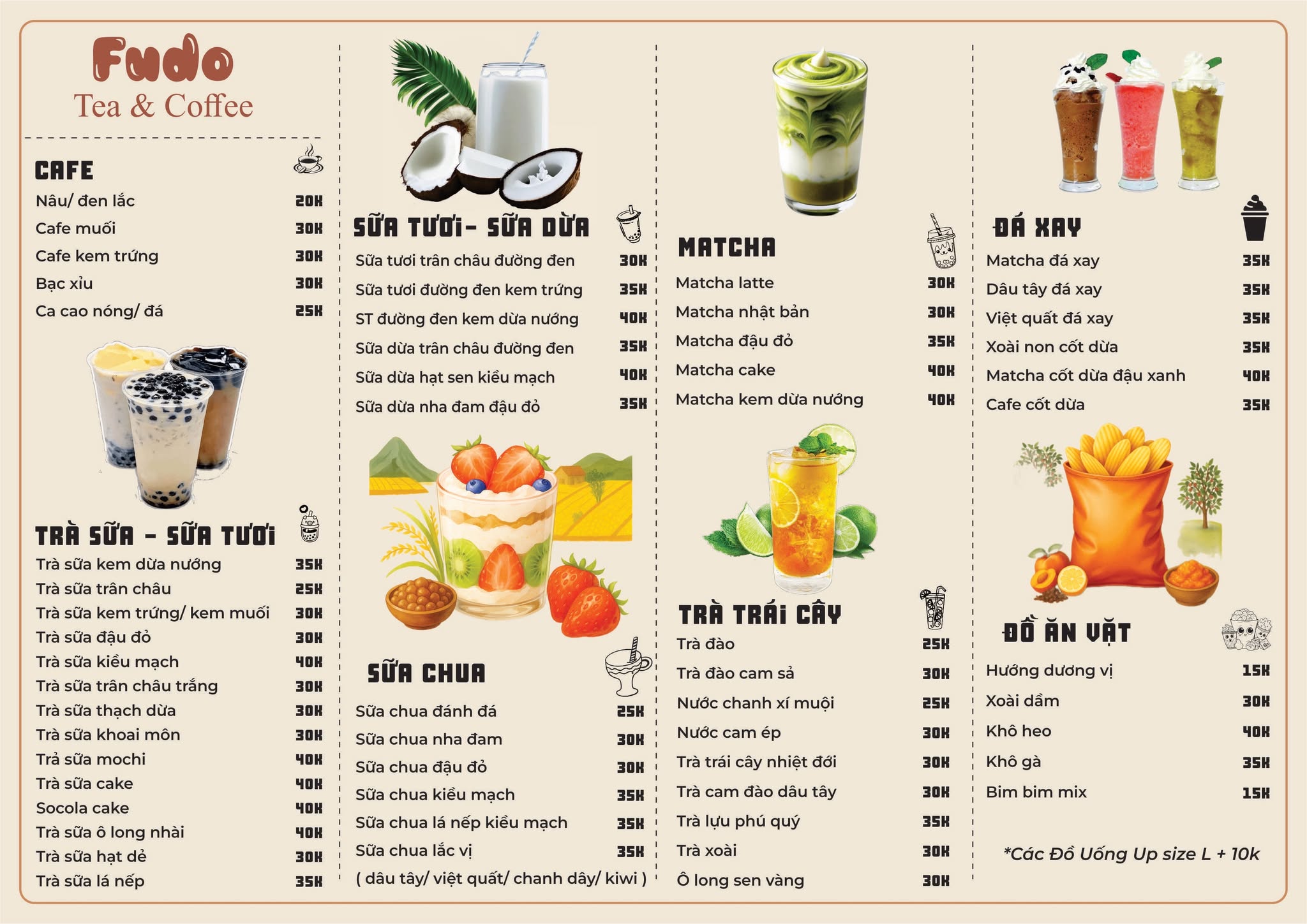 Đổi mới để dẫn đầu Không ngủ quên trên chiến thắng, Fudo Tea mang trong mình DNA của sự sáng tạo. Chúng tôi hiểu rằng nhu cầu của khách hàng luôn thay đổi, và Fudo luôn sẵn sàng chuyển mình để đáp ứng điều đó. Từ việc liên tục cập nhật menu với những công thức độc quyền, đến việc đầu tư nâng cấp không gian kiến trúc sang trọng, hiện đại, Fudo cam kết mang đến sự mới mẻ mỗi ngày. Mỗi lần bạn ghé thăm Fudo là một lần trải nghiệm sự khác biệt và đẳng cấp.